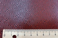 少しつやのある黒の上に盛り上がりのある朱で柄をつけた高級感のある紙です。うるしのような朱色で落ち着いた色調。箱に貼ったりする用途に向いています。