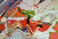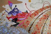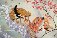 華やかな平安王朝の源氏絵巻を四季の草花、四季の色合で和紙に染めあげております
