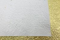 裏面が金色になっている両面色つきの紙です。凸凹した仕上げになっており、表面はつるつるしています。華やかな紙なのでお祝いやお正月の装飾にお使いいただけます。
