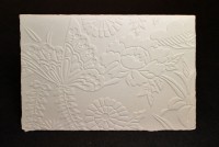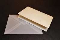 上品な白の厚紙に凹凸で柄を描き出した越前和紙です。中面はほぼ平らになっており直接字を書けるようになっています。透ける封筒がついているおしゃれなカードです。