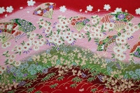 機械漉き友禅紙 赤地に金の小桜 S81